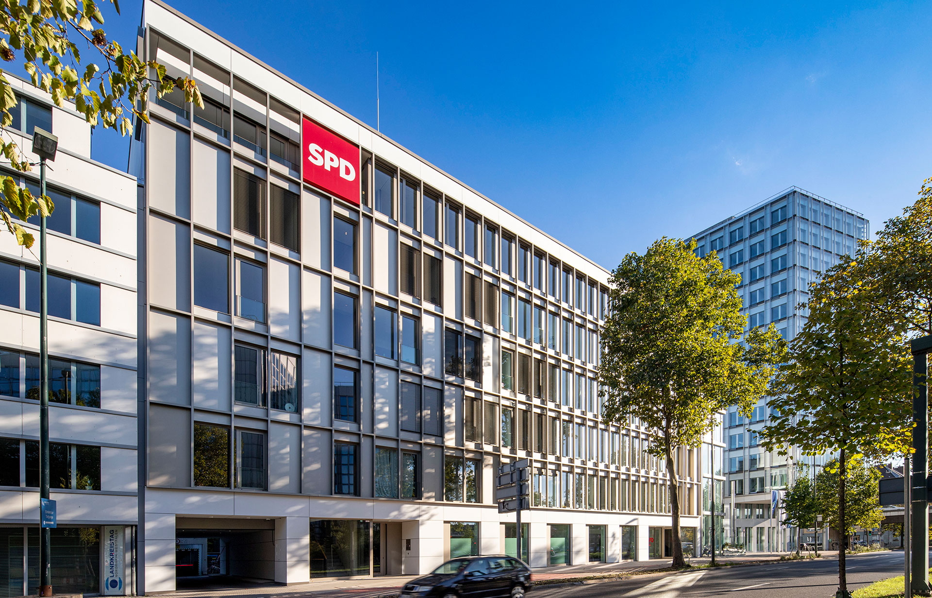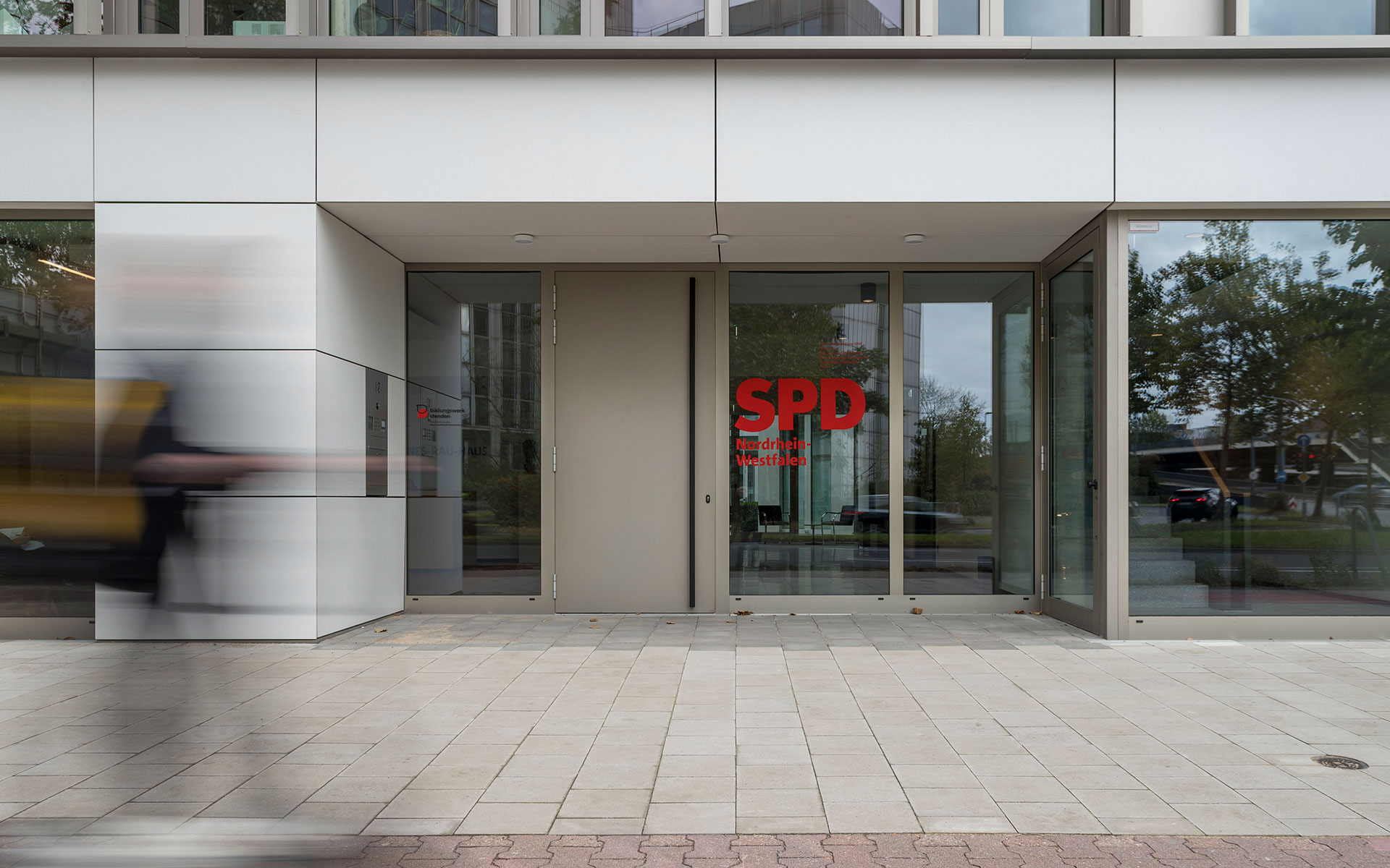 Im 1. – 4. Obergeschoss sind die verschiedenen Abteilungen und Büroflächen der NRWSPD, sowie die Wohneinheiten untergebracht. Zusätzlich ist im Erdgeschoss an das repräsentative Foyer das Bildungswerk mit seinen Seminarräumen angeschlossen.